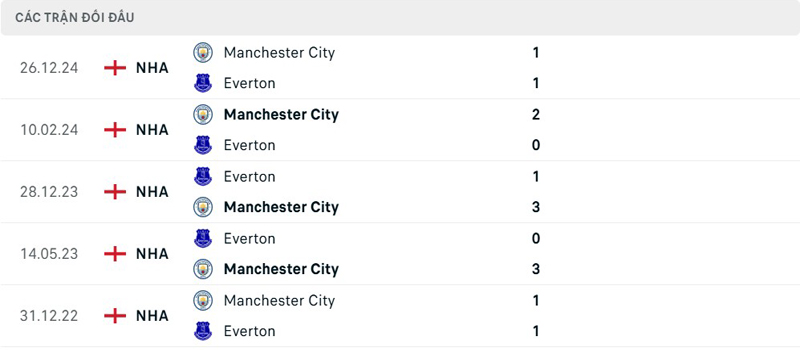 Nhìn về quá khứ trong 5 lần 2 đội đụng độ nhau gần đây nhất, Manchester City đang tỏ ra nhỉnh hơn với 3 chiến thắng và 2 trận hòa. Tuy nhiên, phong độ sân nhà ổn định của Everton hoàn toàn có thể khiến Man City phải chia điểm nếu không giữ được sự tập trung cao độ.